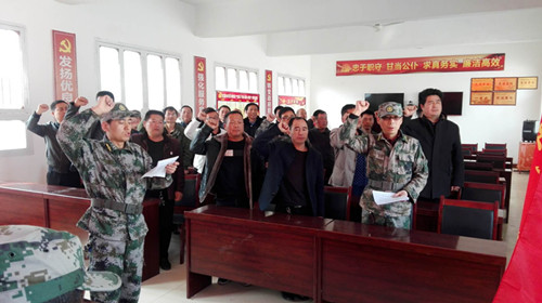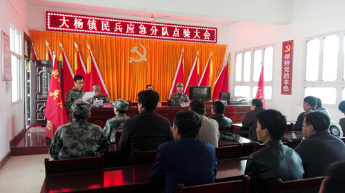 3月16日中午,大杨镇举行民兵应急排点验大会。新入队民兵以饱满的精神、昂扬的斗志、实战的姿态接受点验,县人武部政委任建卫出席点验大会。